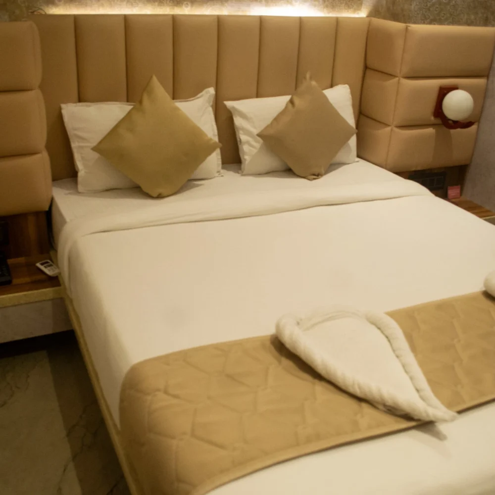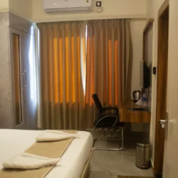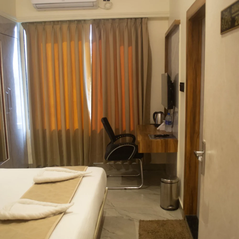 The Premium Room at Prag Mahal Residency features air conditioning, a Select Comfort queen bed with premium bedding, a private bathroom with shower, a 44-inch flat-screen TV, an electric kettle, and free bottled water. Ideal for guests seeking extra comfort and relaxation, this spacious room offers a city view and modern amenities in the heart of Bhetapara, Guwahati.​
